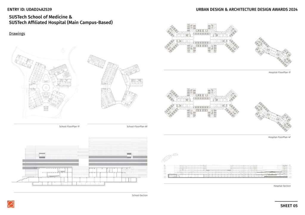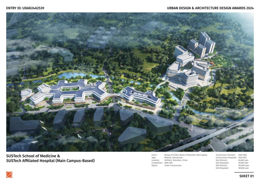 The architectural form of the SUSTech Medical School and the Affiliated Hospital also resonates each other with the same design language.