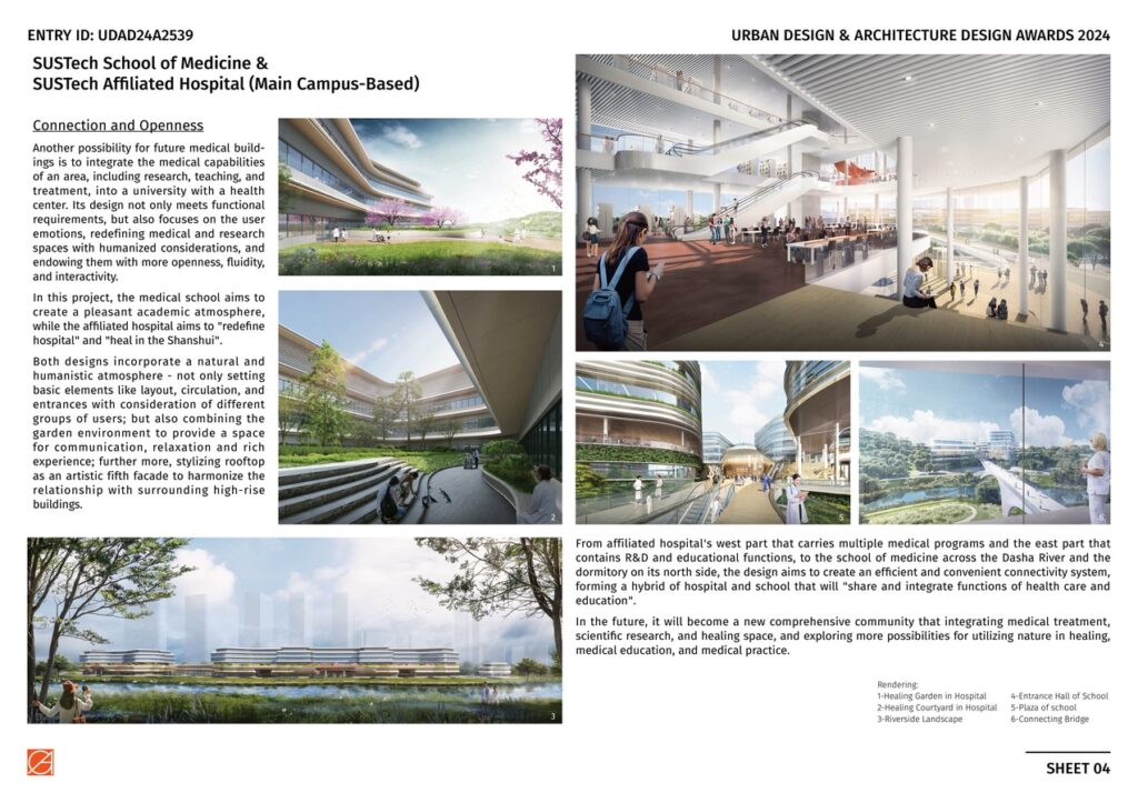 In this project, the medical school aims to create a pleasant academic atmosphere, while the affiliated hospital aims to “redefine hospital” and “heal in the Shanshui”. In the future, it will become a new comprehensive community that integrating medical treatment, scientific research, and healing space, and exploring more possibilities for utilizing nature in healing, medical education, and medical practice.