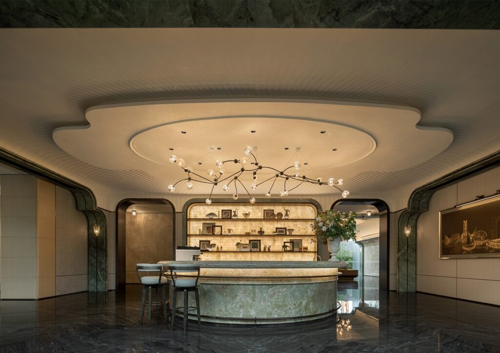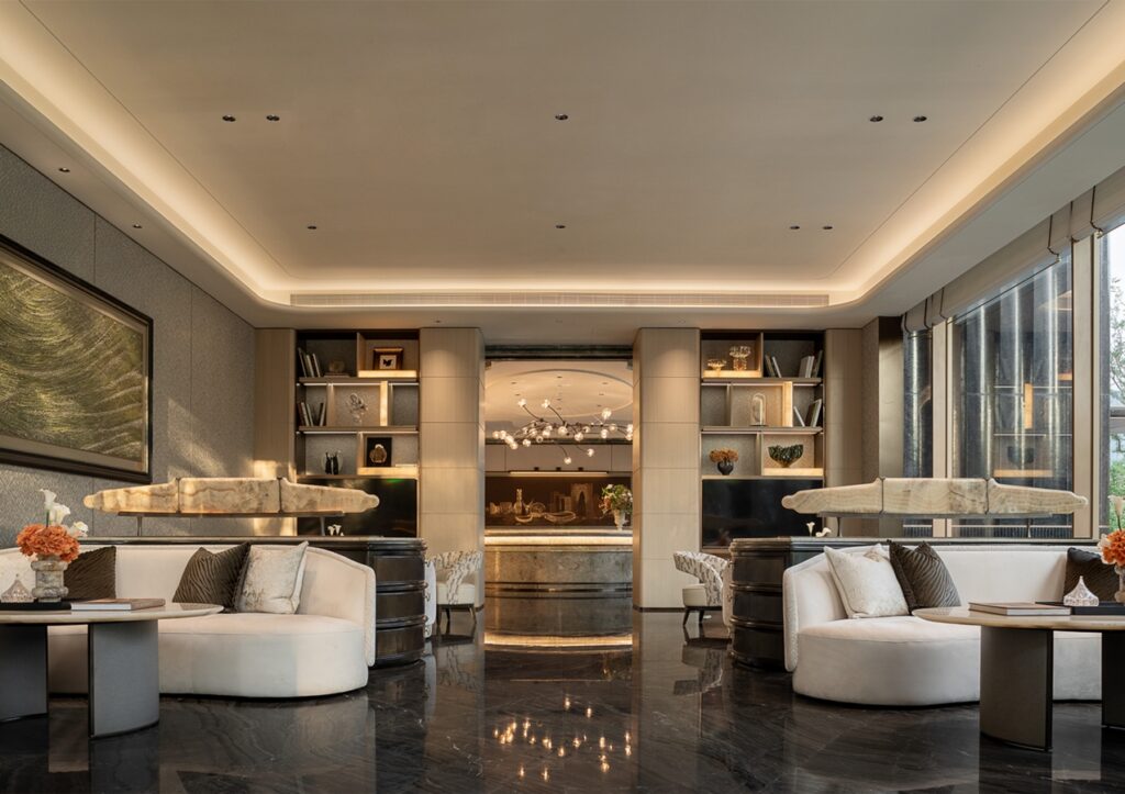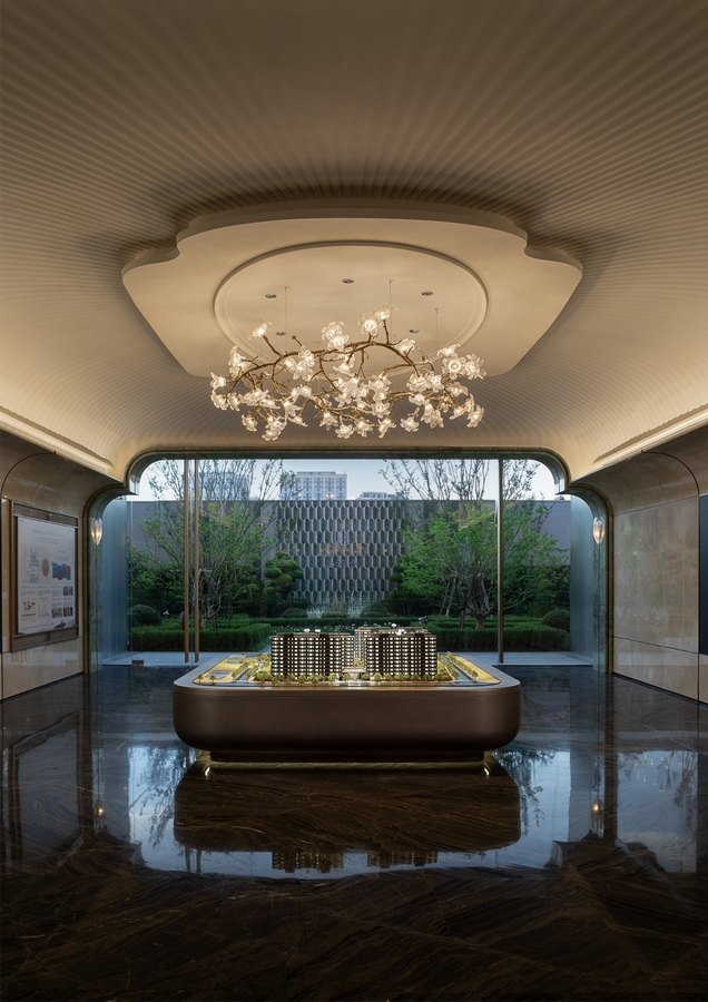 With the classic lily genes of Greentown, the fifth lily product series has been launched globally, forming a market differentiation and recognition. Through the four major threads of “The Form of Lily”, “the Realm of Lily”, “The Charm of Lily”, and “the Fragrance of Lily”, the unique personality of lily, which is “elegant, exquisite, luxurious and artistic”, is purified to enhance the customer’s perception of the product. Taking the delicacy and elegance of lilies as the main inspiration, through modern design techniques to deconstruct natural elements, a high-end sales space like an art gallery is created, symbolizing “the beautiful blooming of home”.