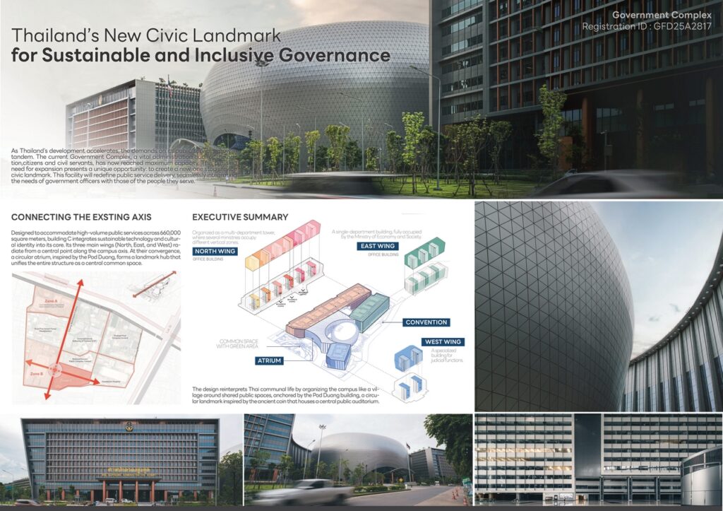 As Thailand’s development accelerates, the demands on its public services grow in tandem. The current Government Complex, a vital administration hub for the nation,citizens and civil servants, has now reached maximum capacity. This pressing need for expansion presents a unique opportunity: to create a new, one stop service civic landmark. This facility will redefine public service delivery, seamlessly integrating the needs of government officers with those of the people they serve