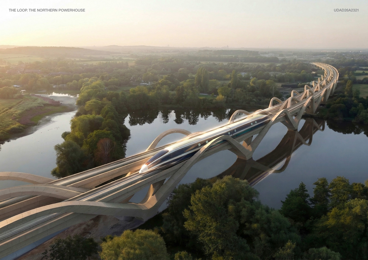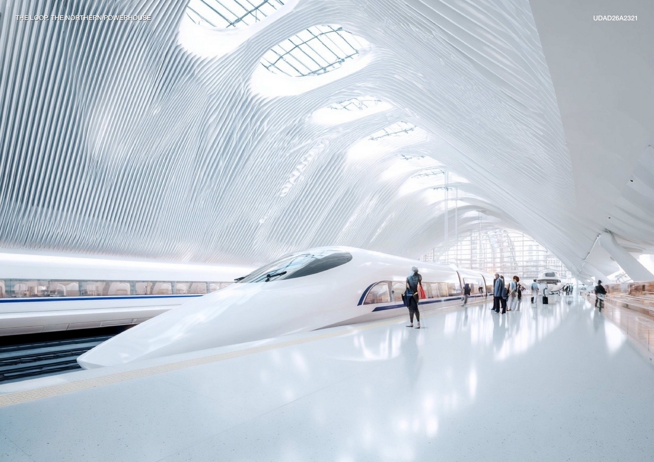 The ambition of The Loop is to create a single, connected northern city. A Northern Powerhouse comparable with other major global cities, bringing together a population of around ten million across nine centres of designated expertise, all within ninety minutes of each other. Eight international airports would be linked within the same time frame. Travel from Edinburgh to Manchester would take less time than crossing Los Angeles. It would allow people to live in Newcastle and work in Glasgow. A new global city, dispersed but connected.