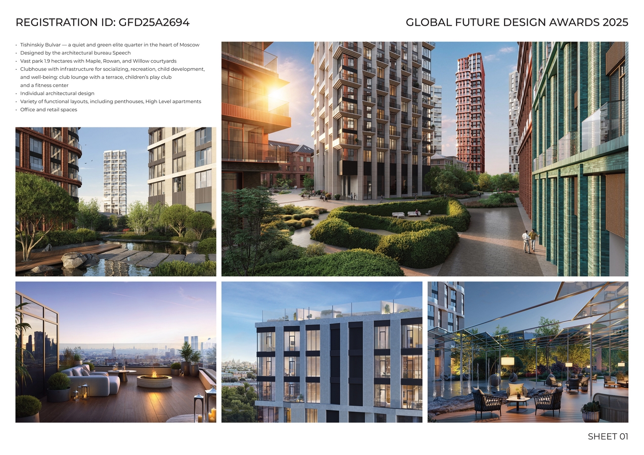 In Tishinskiy bulvar, a unique promenade has been created exclusively for residents and their guests, set within a vast park covering 1.9 hectares, with richly landscaping, covered galleries, and green rooms. The unique pedestrian boulevard runs through the entire quarter and unites three distinct courtyards into a single landscaped space: the Maple, Rowan, and Willow courtyards.