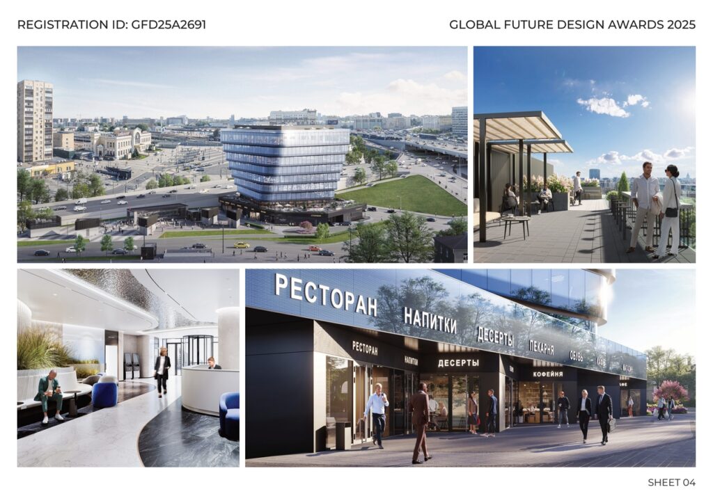 Twist offers a well-developed infrastructure for informal interactions with clients: four restaurants with terraces, a coffee shop, and landscaped terraces on the roof and stylobate for employees and visitors.