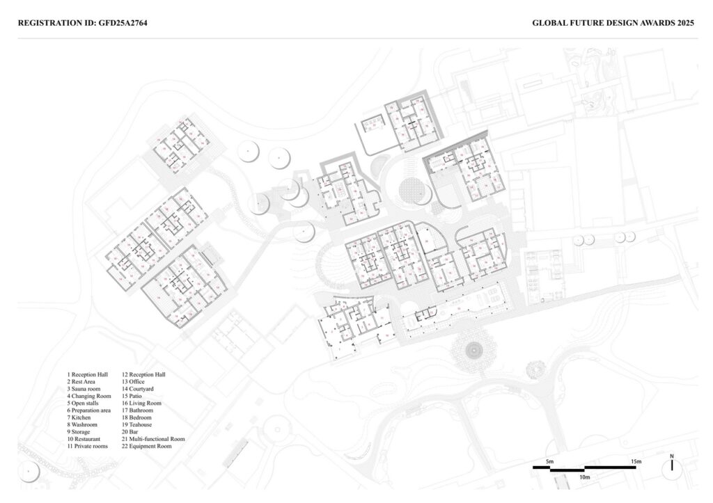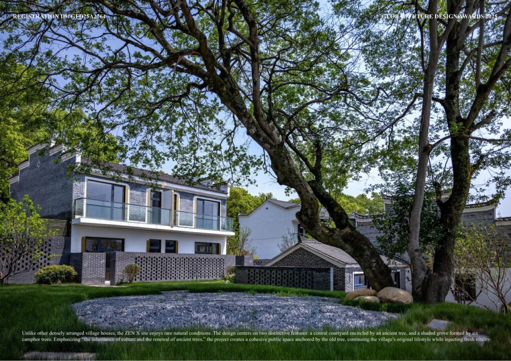 Unlike other densely arranged village houses, the ZEN X site enjoys rare natural conditions. The design centers on two distinctive features: a central courtyard encircled by an ancient tree, and a shaded grove formed by six camphor trees. Emphasizing “the inheritance of culture and the renewal of ancient trees,” the project creates a cohesive public space anchored by the old tree, continuing the village’s original lifestyle while injecting fresh vitality.