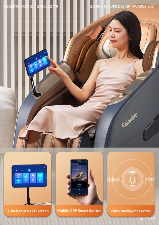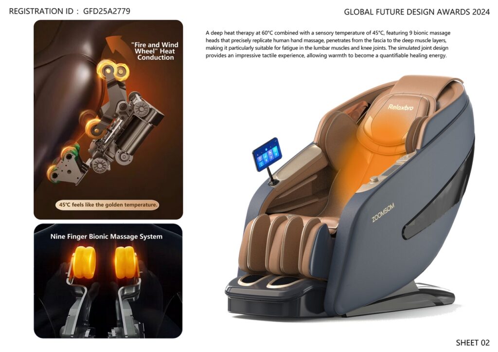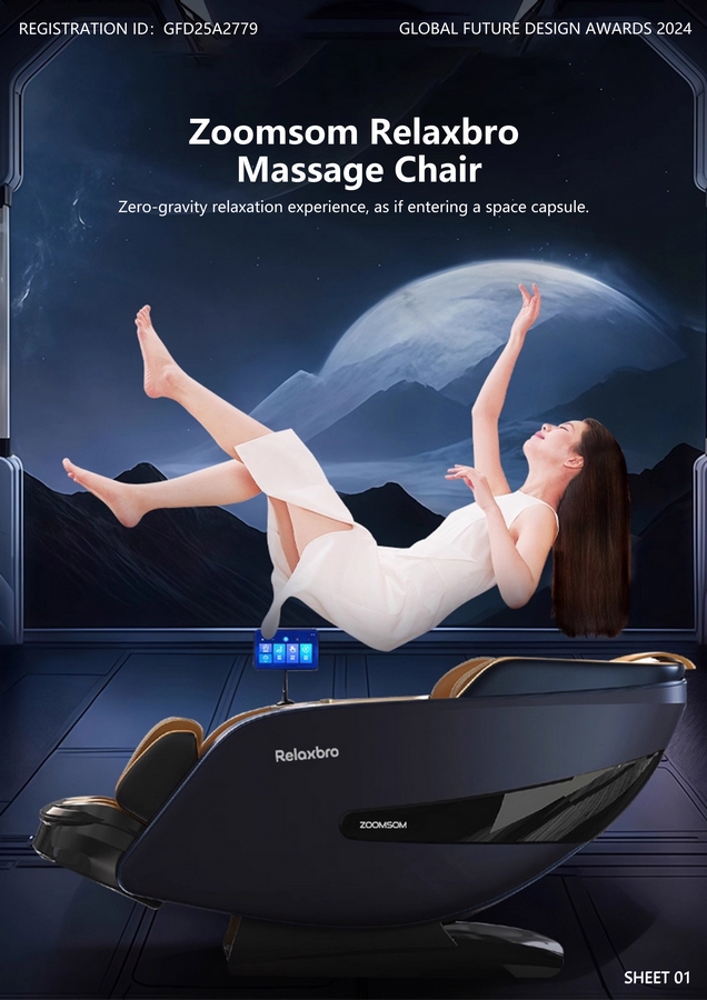 The Zoomsom Relaxbro Massage Chair inspired by space capsule design, offers an unprecedented zero-gravity relaxation mode. It adjusts the legs to the golden elevation angle with the body, distributing body weight evenly, creating a light floating sensation as if in a space capsule.