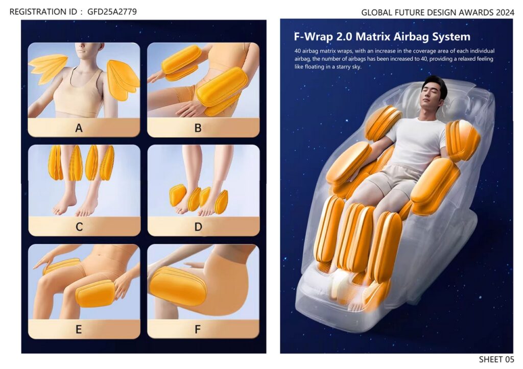 Over 40 airbags are distributed throughout the body and limbs, forming a full-coverage matrix wrap, integrating professional techniques such as kneading, hammering, tuina, patting, and acupressure, covering over 30 massage modes to meet the personalized needs of users.