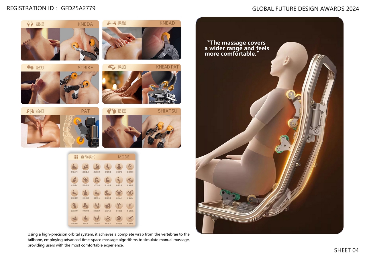 The thermal sensing movement combined with the 45° sauna-style sliding massage function integrates heating and sliding massage, bringing deep relaxation and rehabilitation experience to the body.