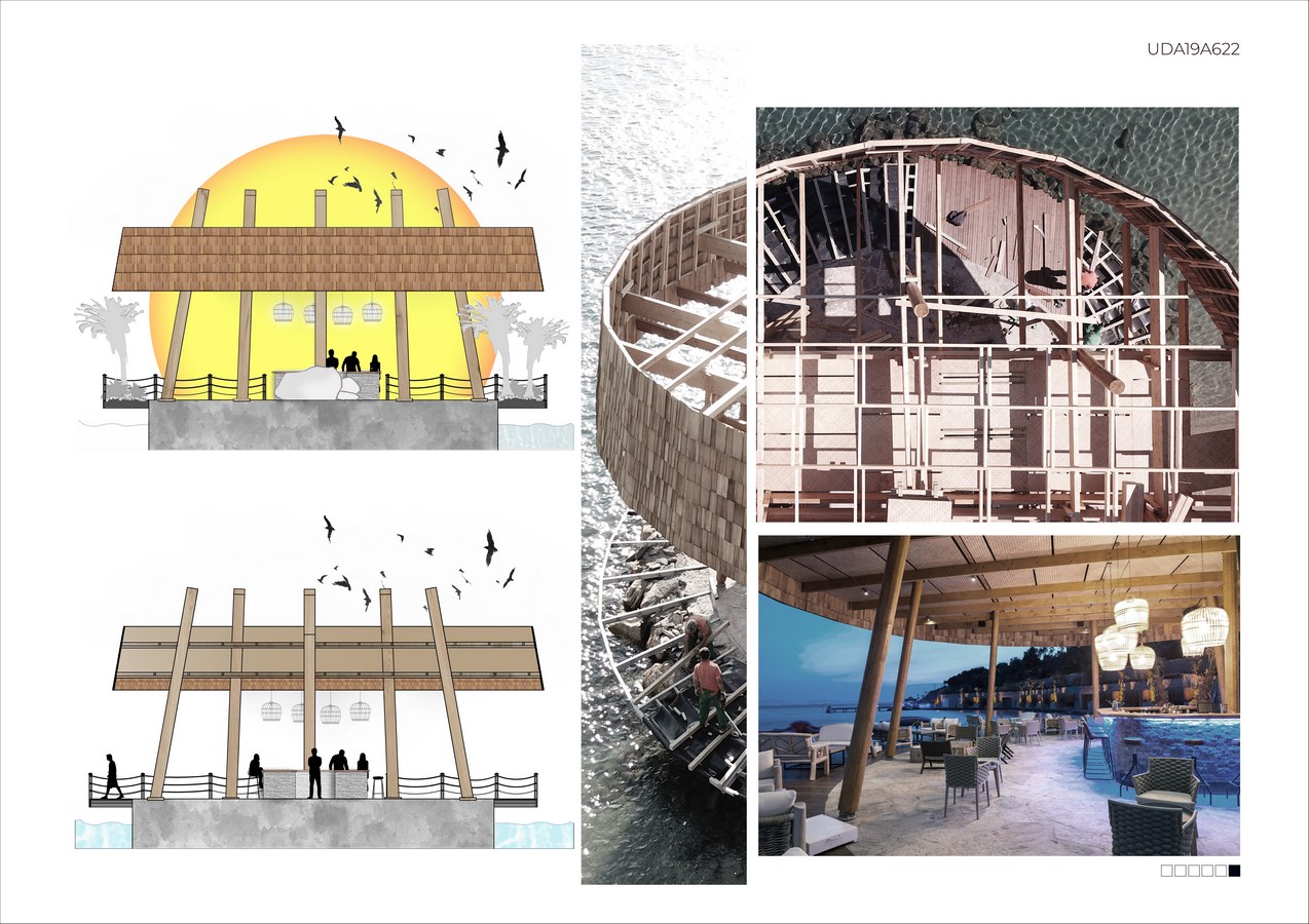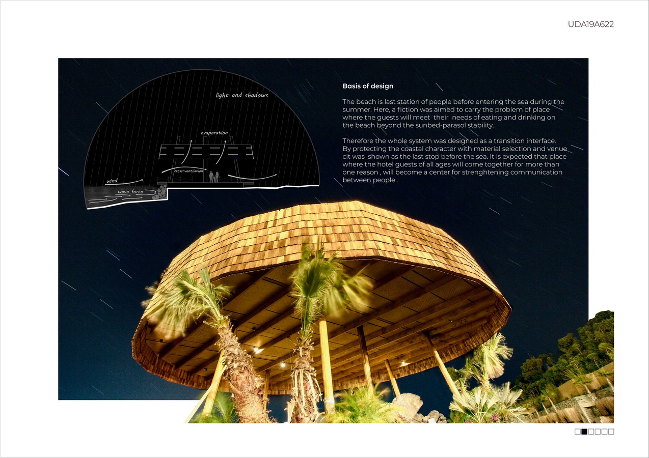 Therefore the whole system was designed as a transition interface. By protecting the coastal character with material selection and venue cit was shown as the last stop before the sea. It is expected that place where the hotel guests of all ages will come together for more than one reason, will become a center for strenghtening communication between people .