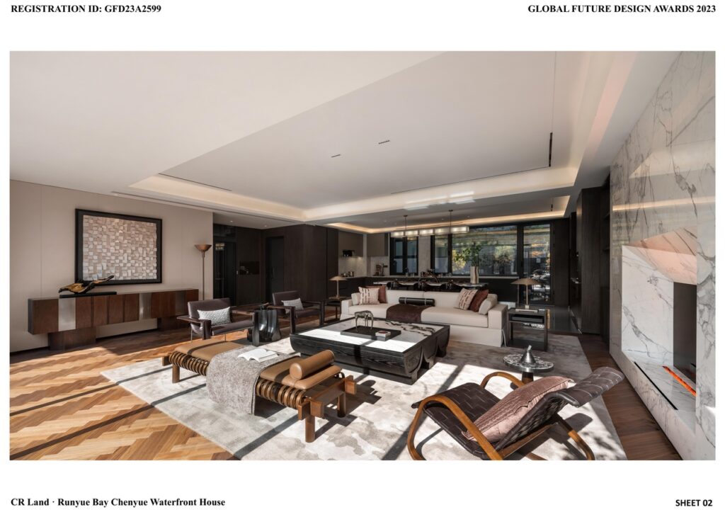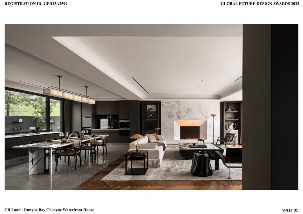 While wandering in the courtyard where the flowers and plants are flourishing vibrantly, residents can appreciate the aesthetic beauty and the ease of life. The living area is built in a dignified Chinese style and has full floor-to-ceiling windows that bring landscape inside and expand the room’s visual area. The overall layer is increased by the blending of stone, fabric, metal, leather, and other elements. As colors and textures clash, it depicts how nature seems. Besides, the kitchen’s hidden cabinet achieves the ideal balance between usability and aesthetics thanks to its extremely large spatial scale and powerful storage.