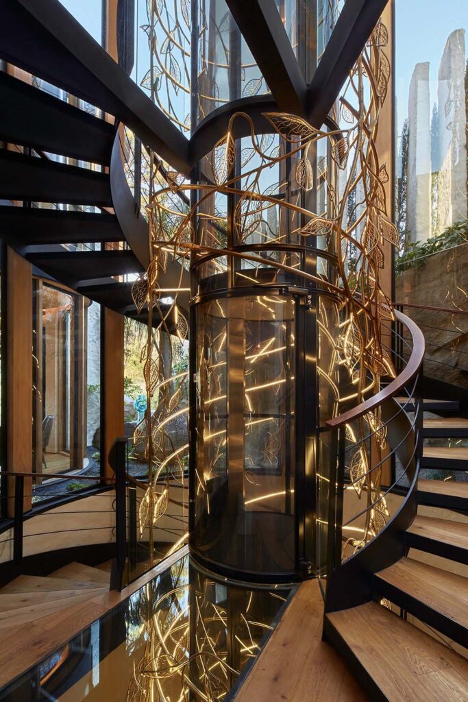 Luciano Gerbilsky Arquitectos have recently completed work on their latest project in Valle de Bravo, Mexico – SIMBIOSIS Residence. Nestled in the breathtaking Valle de Bravo, Mexico, this residence is a testament to the harmonious fusion of design and nature. The residential project gracefully emerged on a generous 1,000m² plot of land, strategically perched atop a majestic cliff that proudly soars 40 meters above the serene Valle de Bravo Lake. The property showcases an intriguing irregular shape and a rugged topography, which have greatly influenced the design approach. The intricate terrain and the bustling population density of the surrounding area have necessitated the development of an organic project with a focus on soft visual finishes. Strategic incisions were thoughtfully integrated into the design, resulting in captivating apertures that seamlessly connect the residence with its natural surroundings. This deliberate approach fosters a harmonious fusion between the indoor and outdoor realms, promoting the revitalization and rejuvenation of the spatial composition encompassing the architectural volumes.