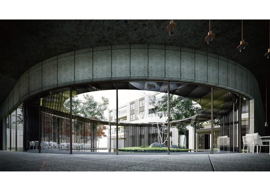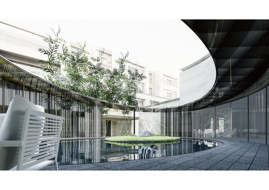 Besides the contrast of straight and curved lines, the vertical and horizontal, the architecture enjoys the geometric beauty of the contrast of the virtual and real. The virtual and real contrast realizes a sculptural sense of the building at the corner. Moreover, materials also express contrastive and complementary relationships. Crystal glass, warm stone and hard metal integrate into an organic one.