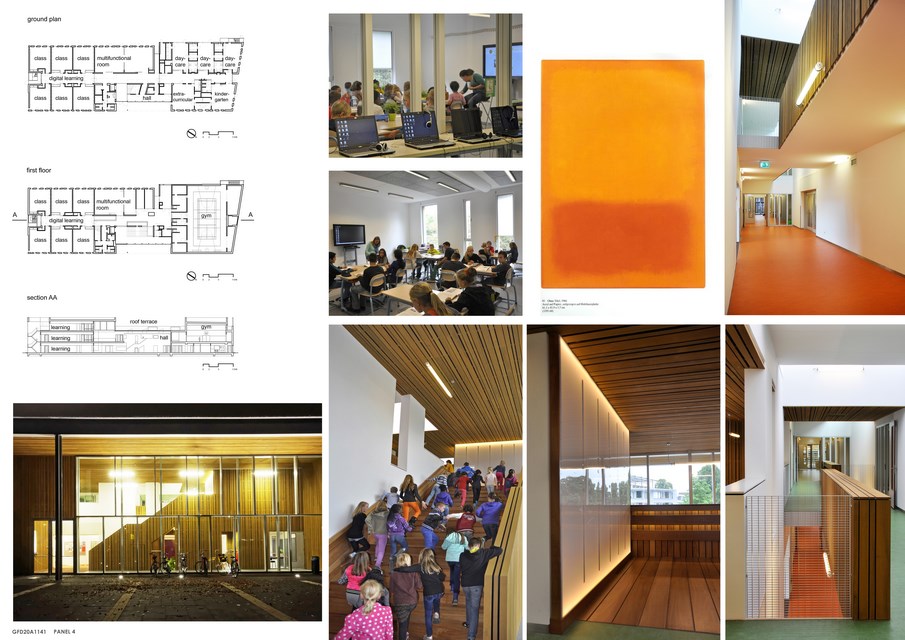 This is a special primary school because there are 5 different groups of users who work together in one building, and use the facilities together for education, care, sports and neighborhood facilities. It consists of 16 classrooms, 3 groups for a daycare, 1 group for extra-curricular activities, 1 nursery school/kindergarten and one gym. The building has a social connection to the neighbourhood and also has rooms available for associations that want to use the extra consultation and meeting rooms.
