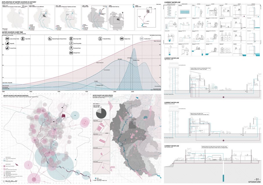 The project was dealing with the water issues in Jaipur, India, researching on the possibility of transforming the challenges to opportunities by improving water infrastructures and management at housing and public space.
