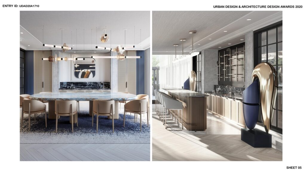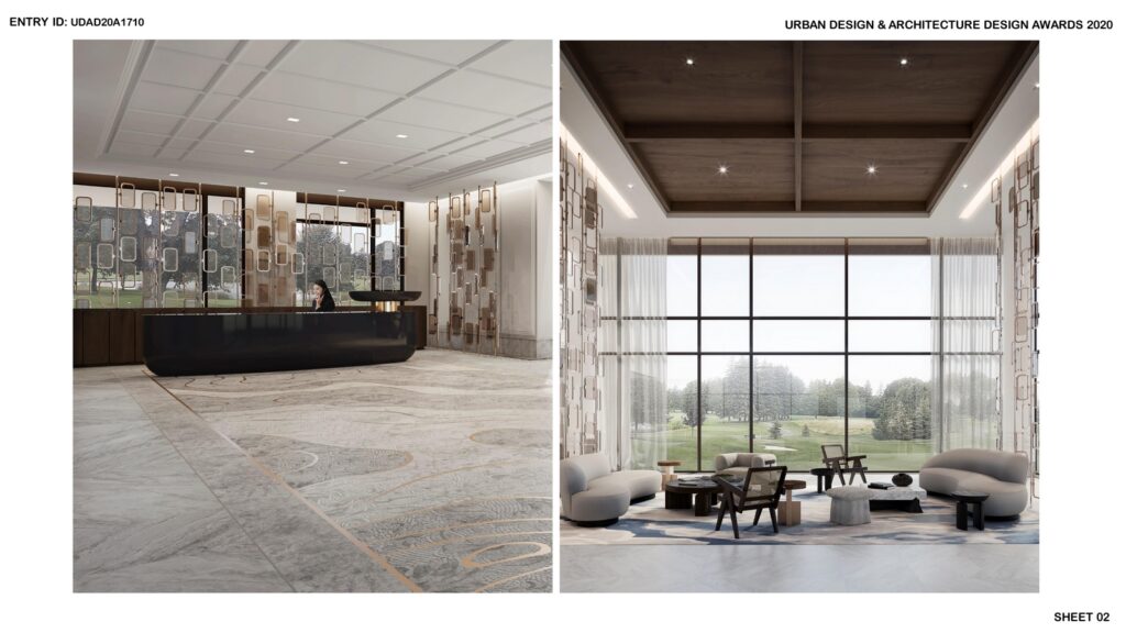 Situated in a community just outside one of North America’s largest cities, the two prominent towers of Royal Bayview rise at 12 and 14 storeys respectively, overlooking the Ladies’ Golf Club of Toronto. Established in 1924, Ladies’ Golf Club of Toronto provided a venue for women golfers at a time when women faced difficulties with access to golf courses. Today, it is the only facility in North America established by women for women. The designers focused on honoring the legacy of the site with luxuriously upscale interiors that offer a blend of both traditional and contemporary features.